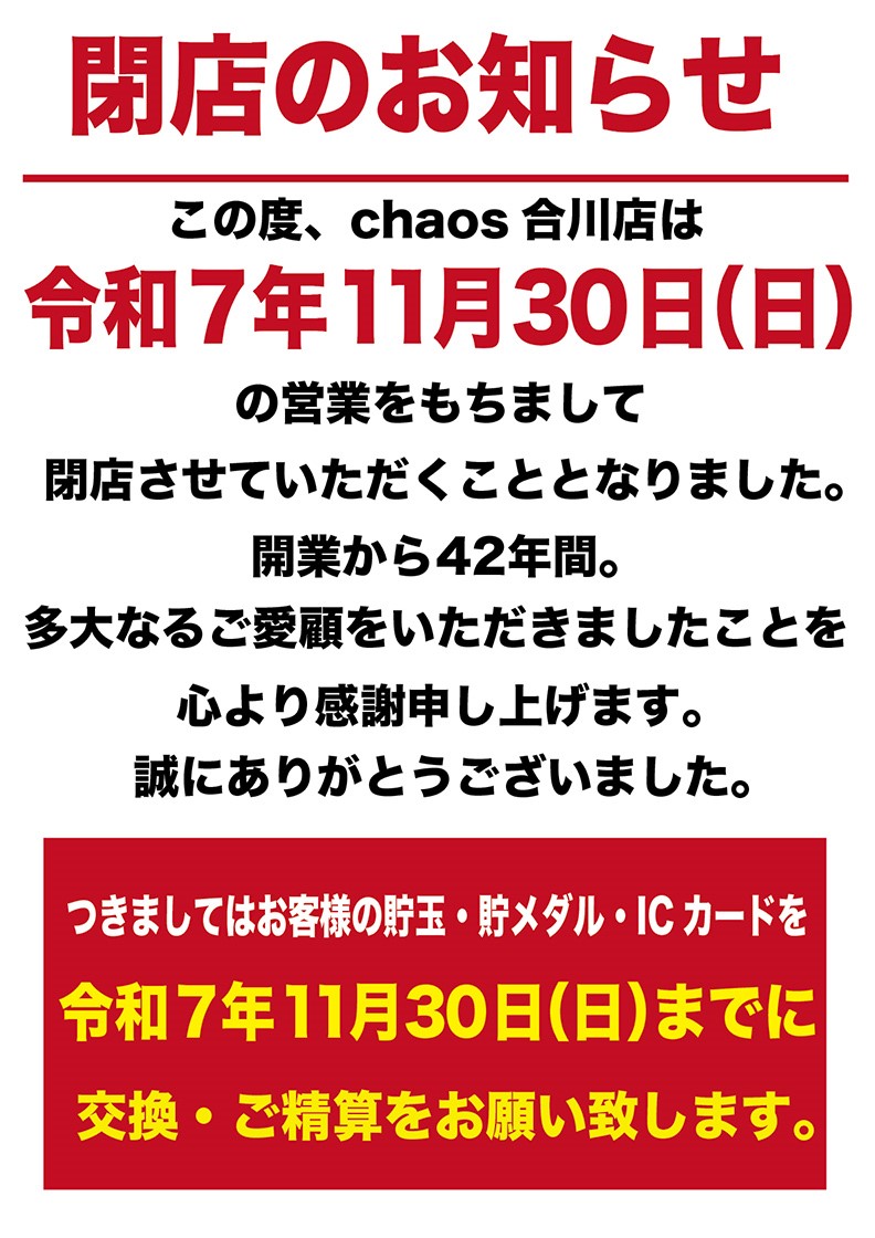 chaos合川店が2025年11月30日で閉店