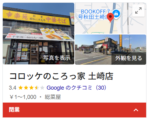 秋田県秋田市にあった「コロッケのころっ家 土崎店」が閉店していることが分かりました。