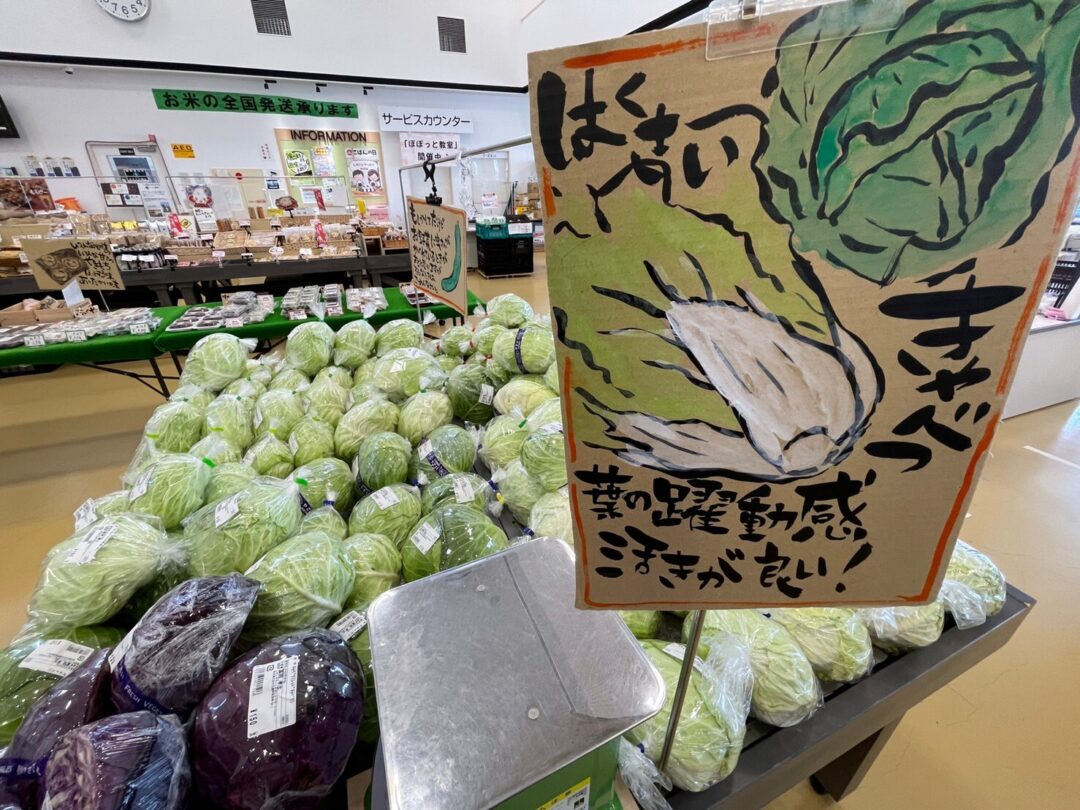 地元野菜やお弁当(ぼだっこ弁当)、手書きのポップなど、温かみのある雰囲気を紹介しています。