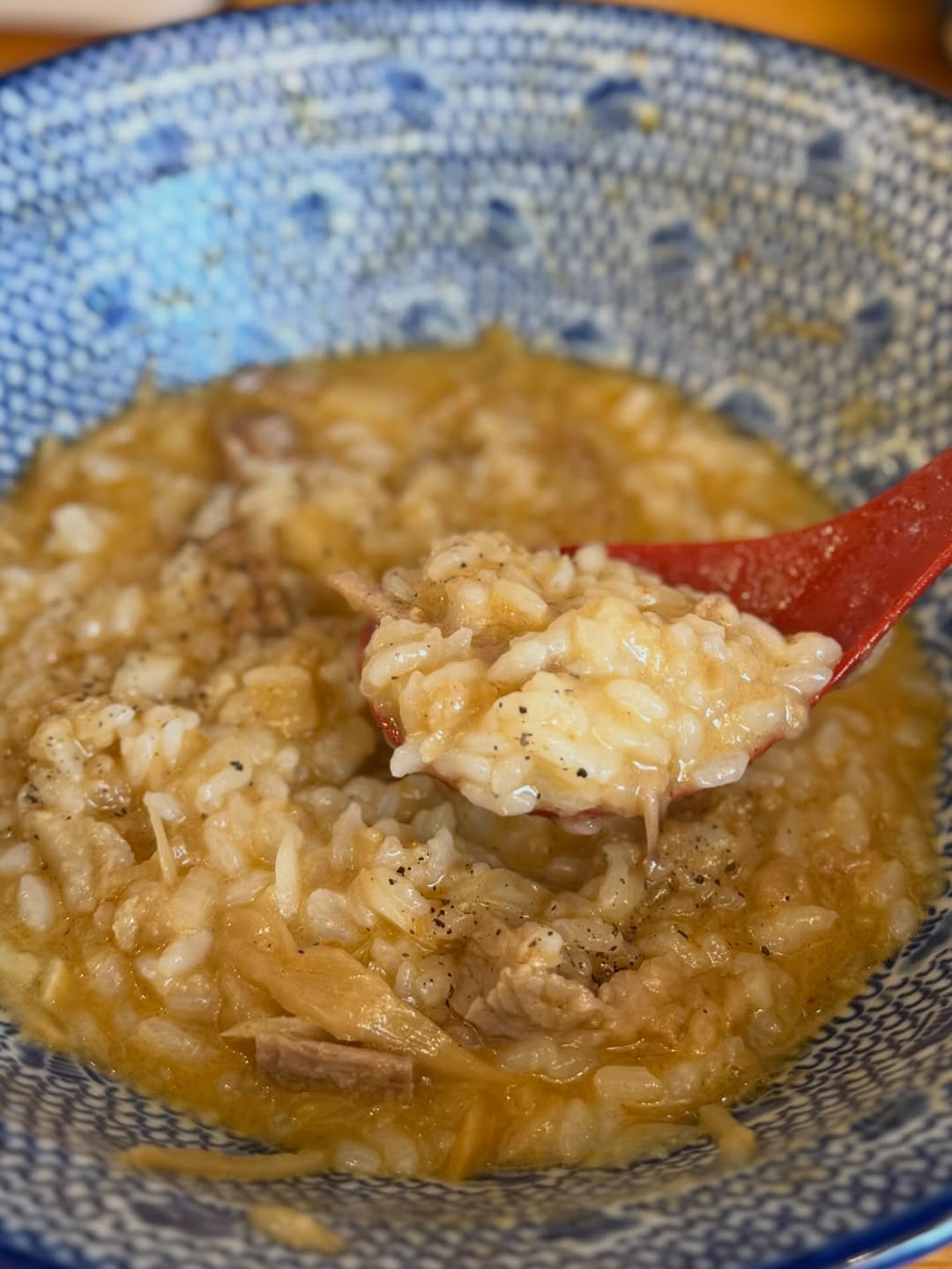 残ったタレにご飯と胡椒を加え、即席リゾット風にして一気にかき込みます。