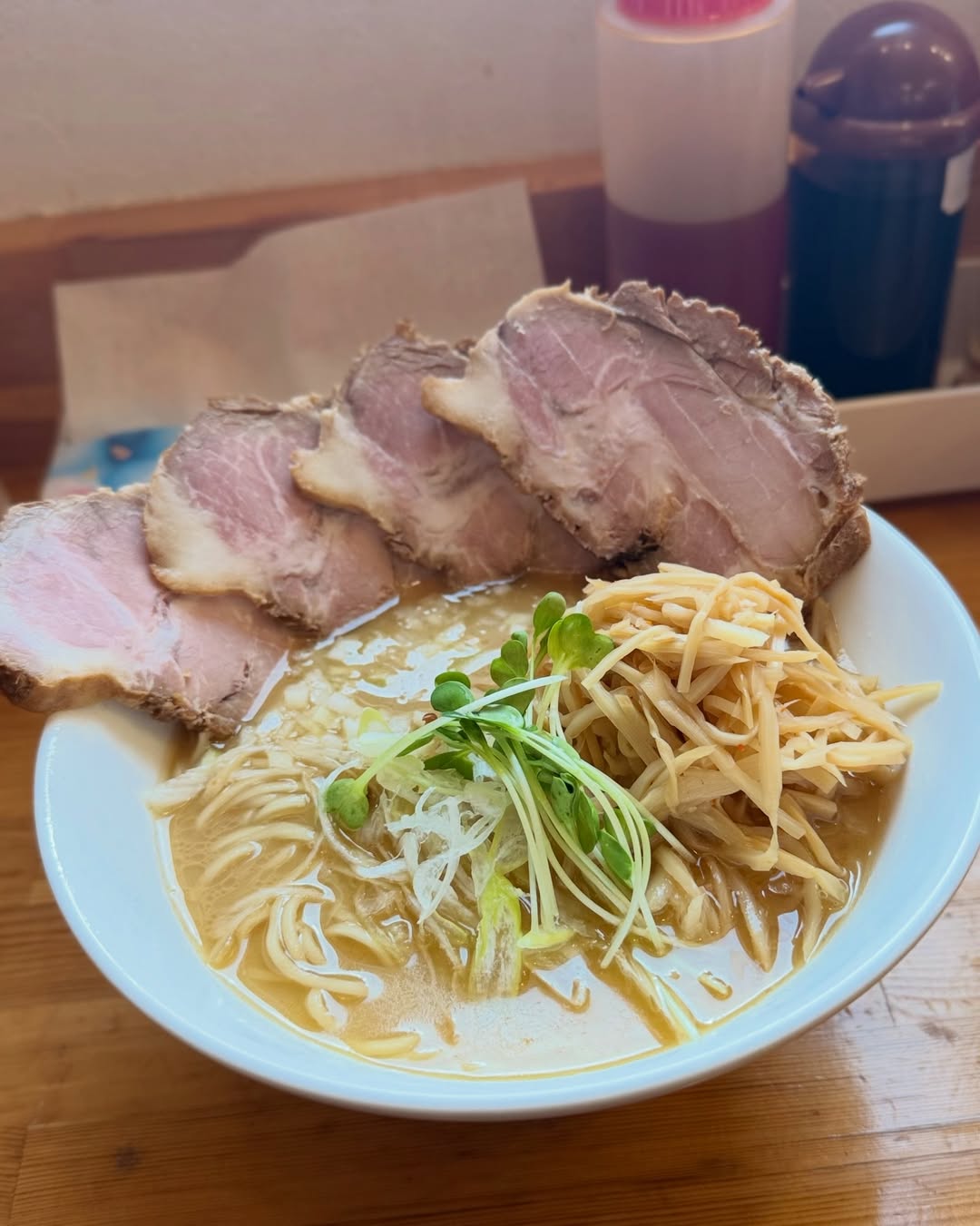 チャーシューとだしメンマをトッピングして注文です。