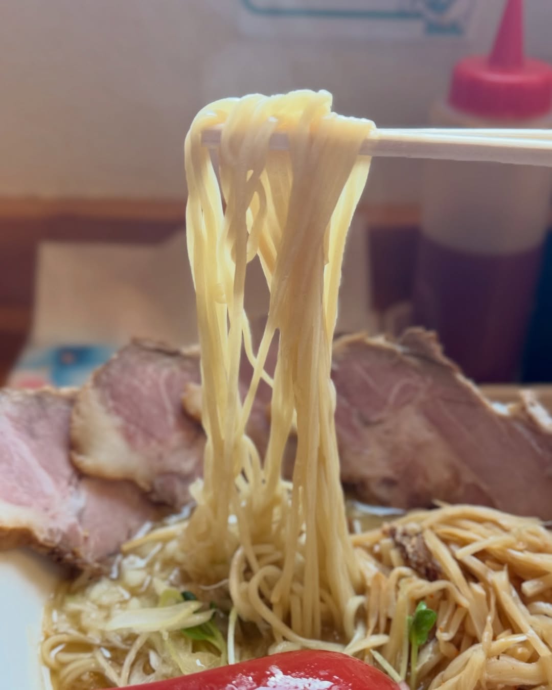 麺は細めのストレート。店名の通り、麺のクオリティの高さが印象的で、スープとの絡みも抜群です。