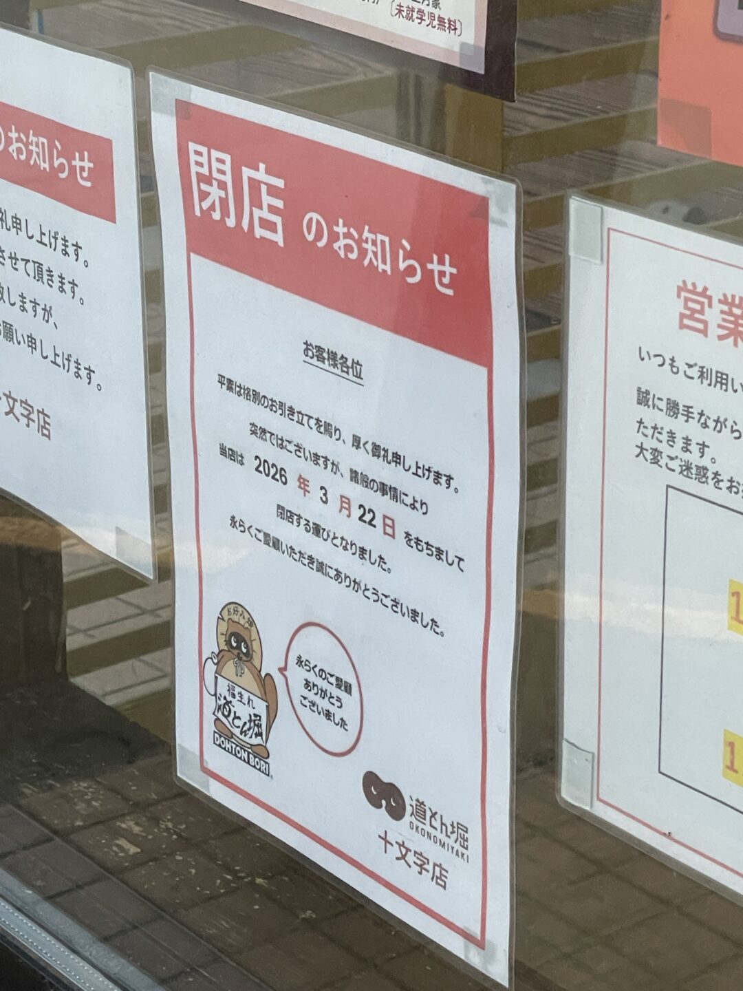 道とん堀 十文字店が3月22日で閉店