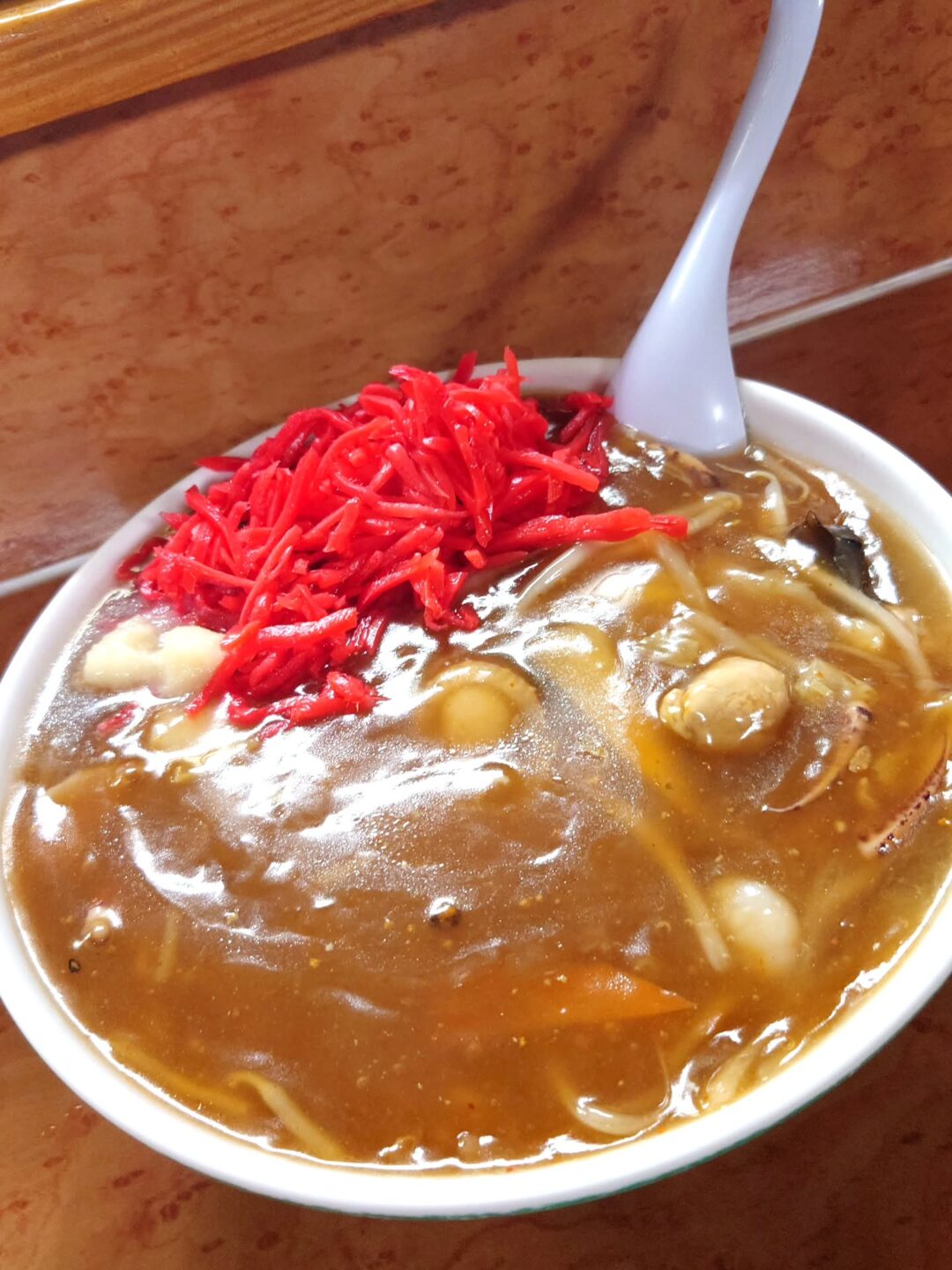 - 濃い目の餡掛け醤油に魚介たっぷり具材が最高