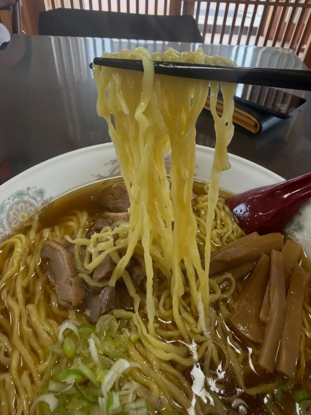 シャンコ麺の食感と香りが、より一層この中華そばの個性を際立たせています。