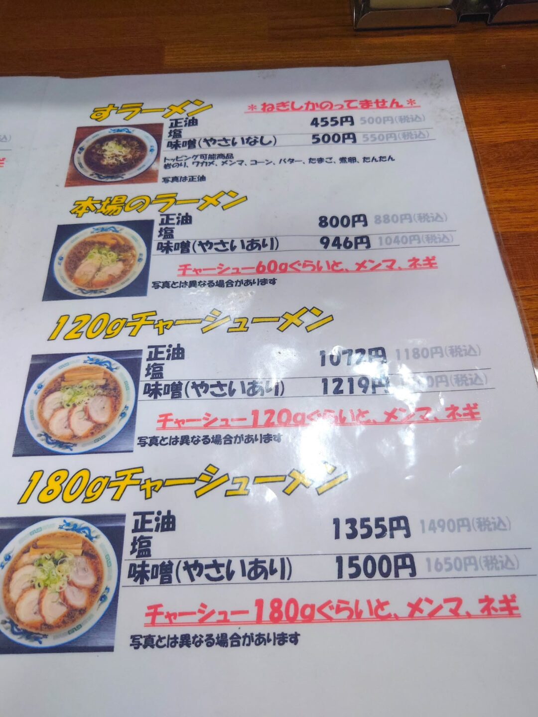 室蘭ラーメン八屋外旭川店(メニューの一部)写真:@makoto_0913