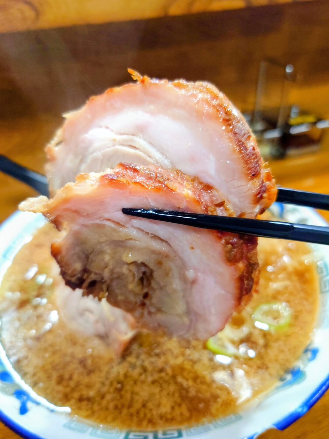 【秋田市】背脂と醤油が直撃!室蘭ラーメン八屋の極厚チャーシュー麺。本日の麺活・サラリーマン佐藤
