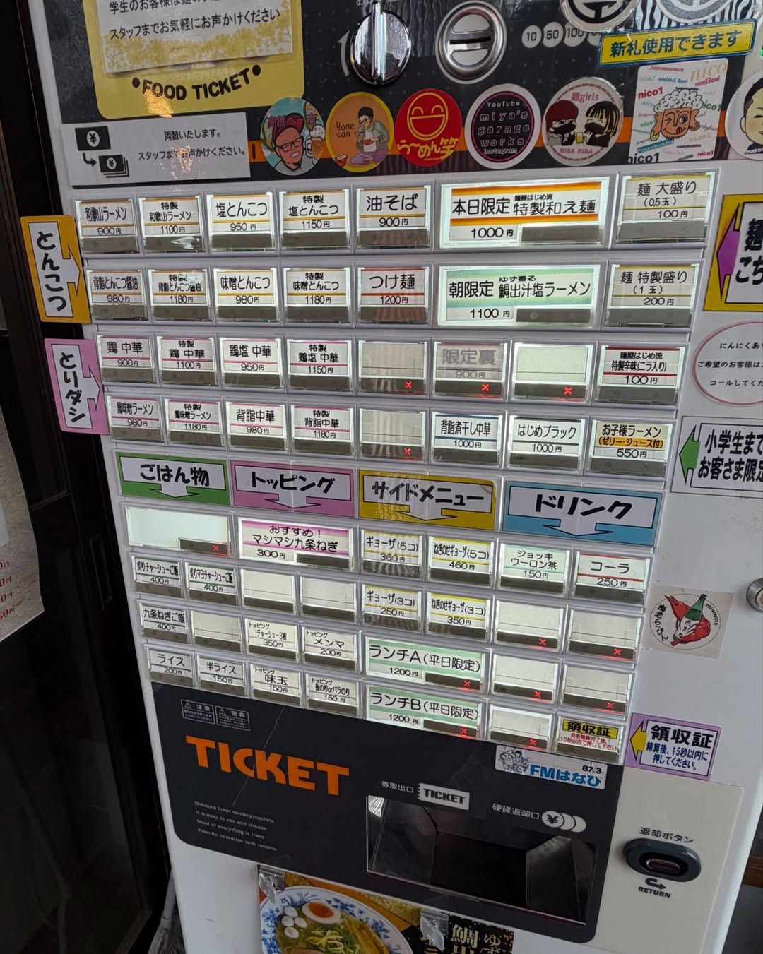麺屋はじめ 券売機メニュー 写真:@mentaro_akita
