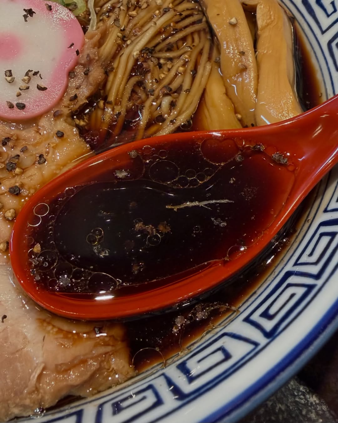 見た目の濃さとは裏腹に、ほんのりとした甘みを感じる奥深い味わい。