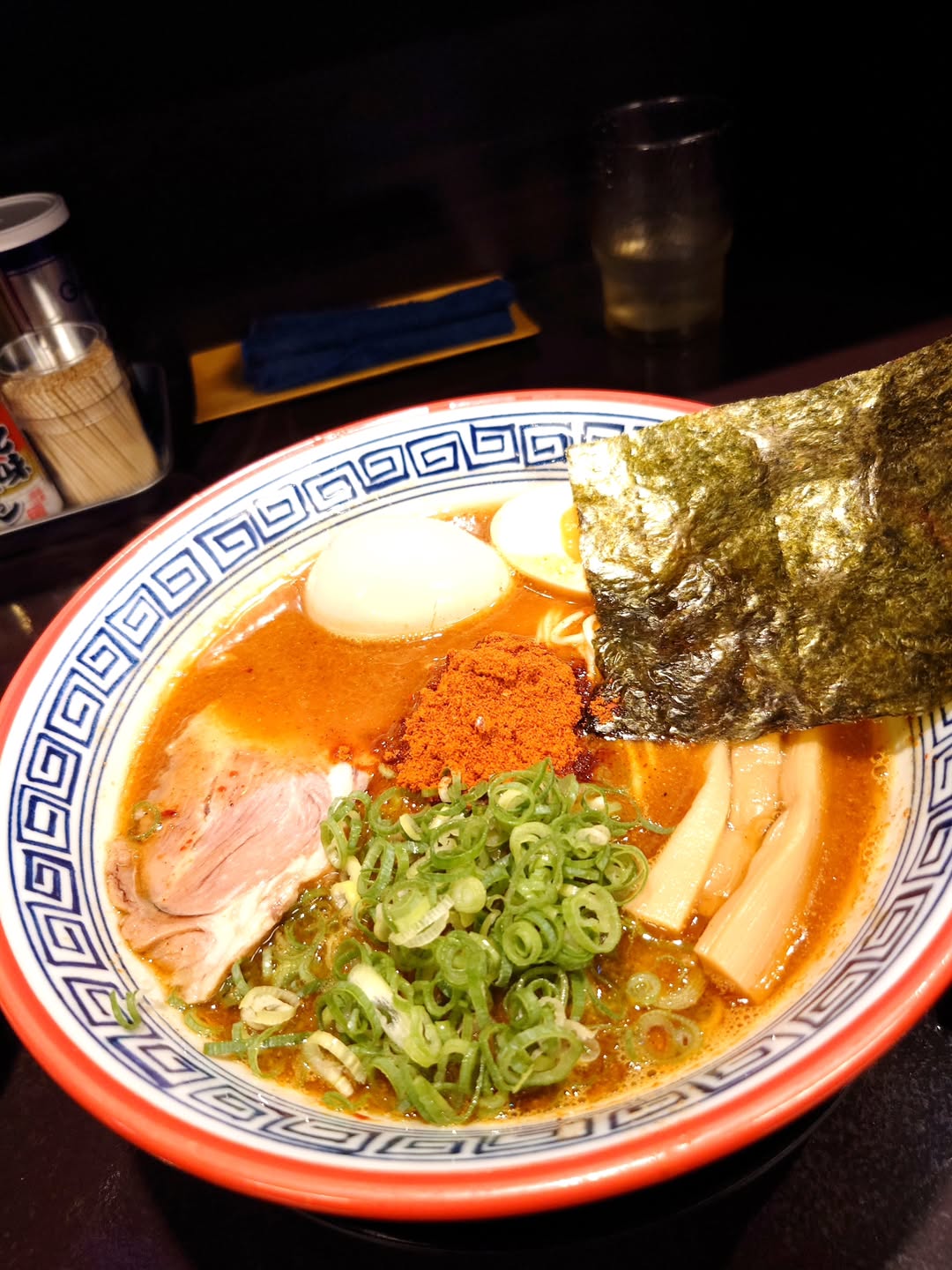 豚骨と魚介の旨みが重なったスープに、辛魚粉がしっかりと効いており、一口ごとに旨辛の波が押し寄せてきます。