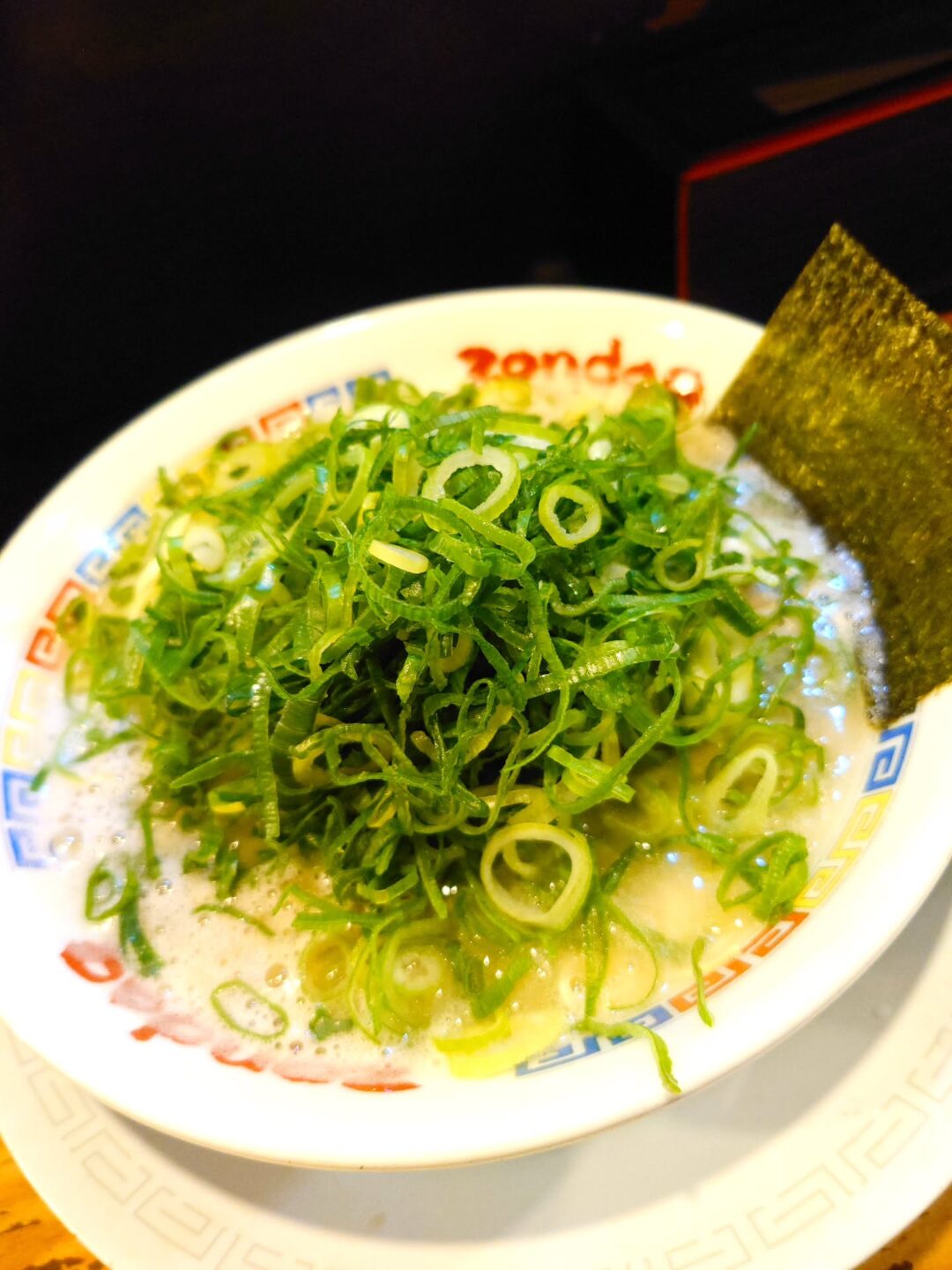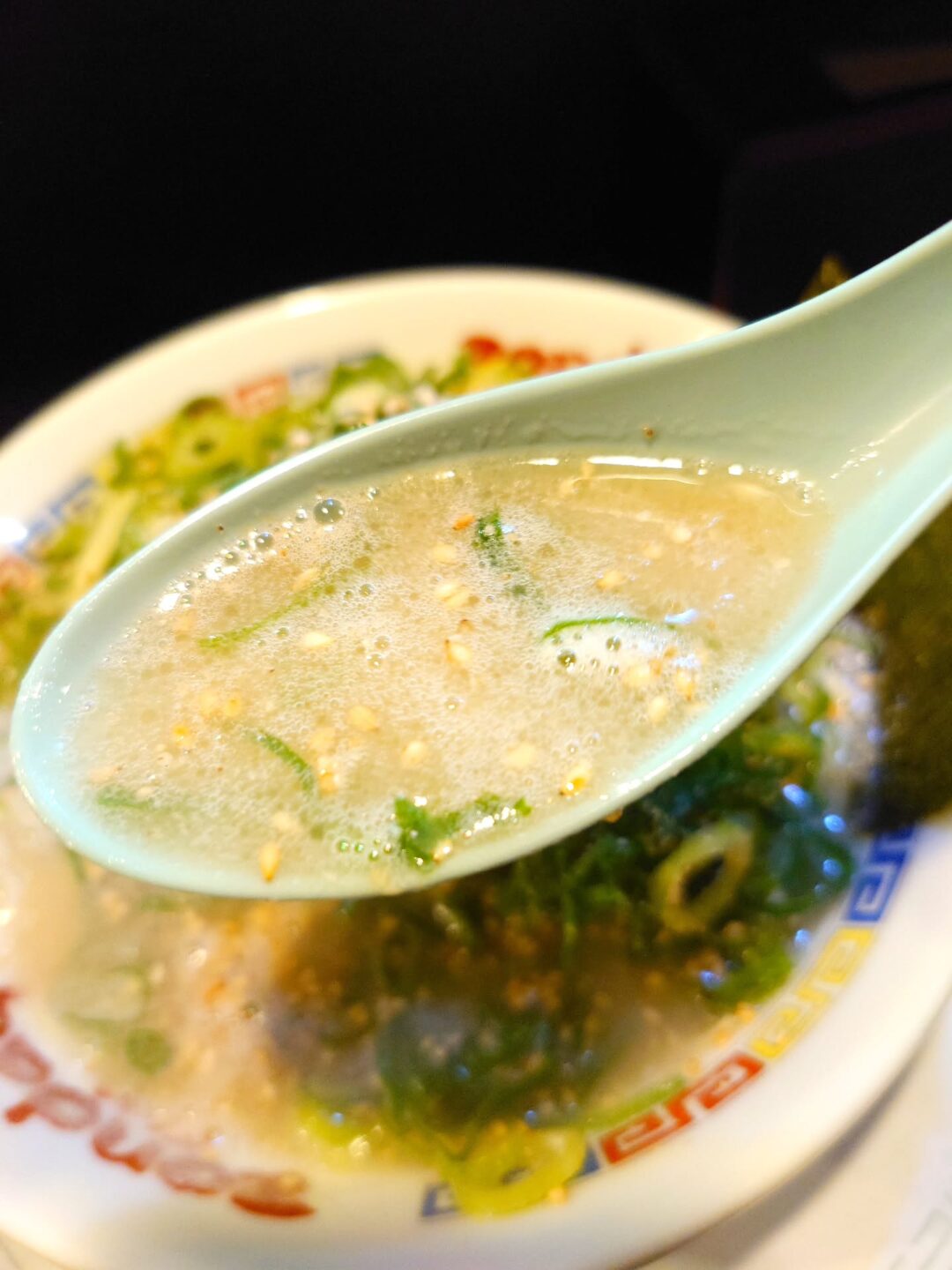 シャキシャキの青ネギが、濃厚スープの中で爽やかなアクセントとなり、コクと清涼感が口の中で見事に重なります。
