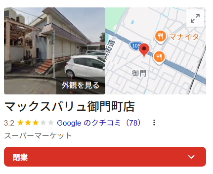 マックスバリュ御門町店は2024年7月に閉店