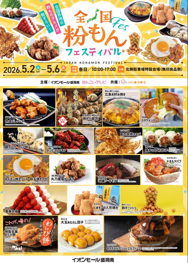 全国粉もんフェスティバルが、イオンモール盛岡南で開催されます。
