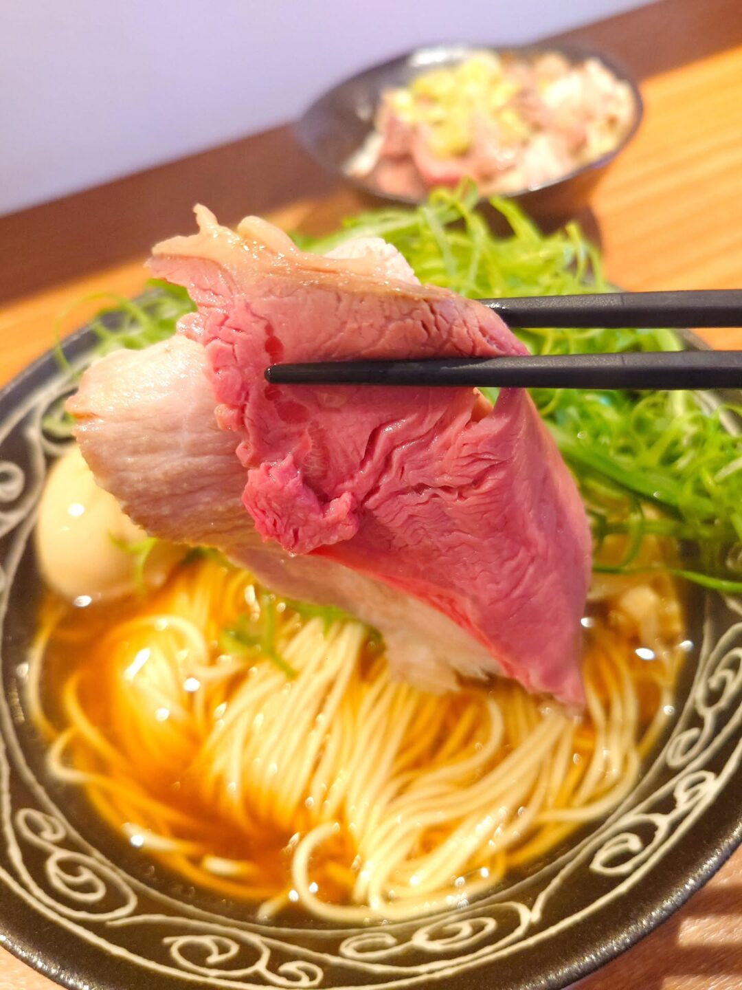 豚と牛、2種類のチャーシューがのった贅沢な構成で、食べ進めるたびに違った旨さを楽しめます。