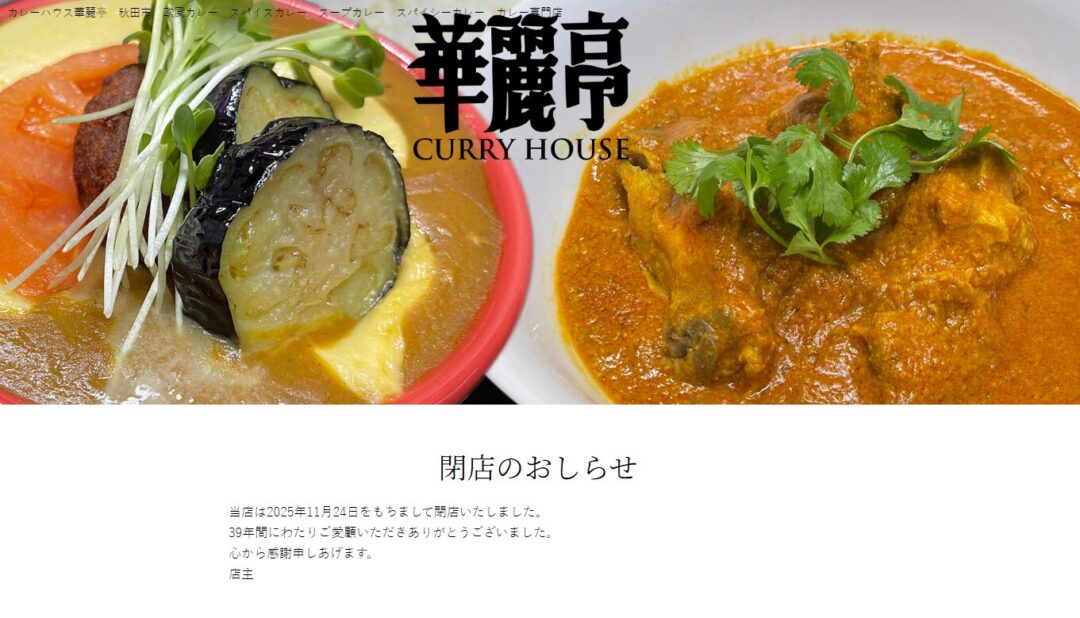カレーハウス華麗亭(秋田市山王)が2025年11月24日で閉店
