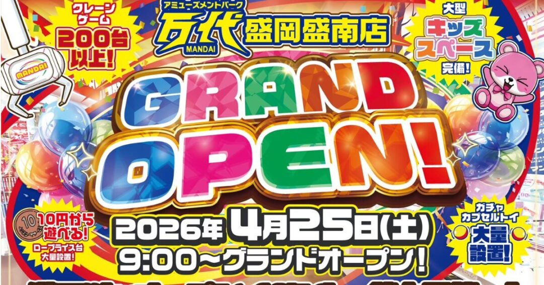 【2026年4月25日】万代盛岡盛南店がグランドオープン!家族で楽しめる大型エンタメ空間が誕生