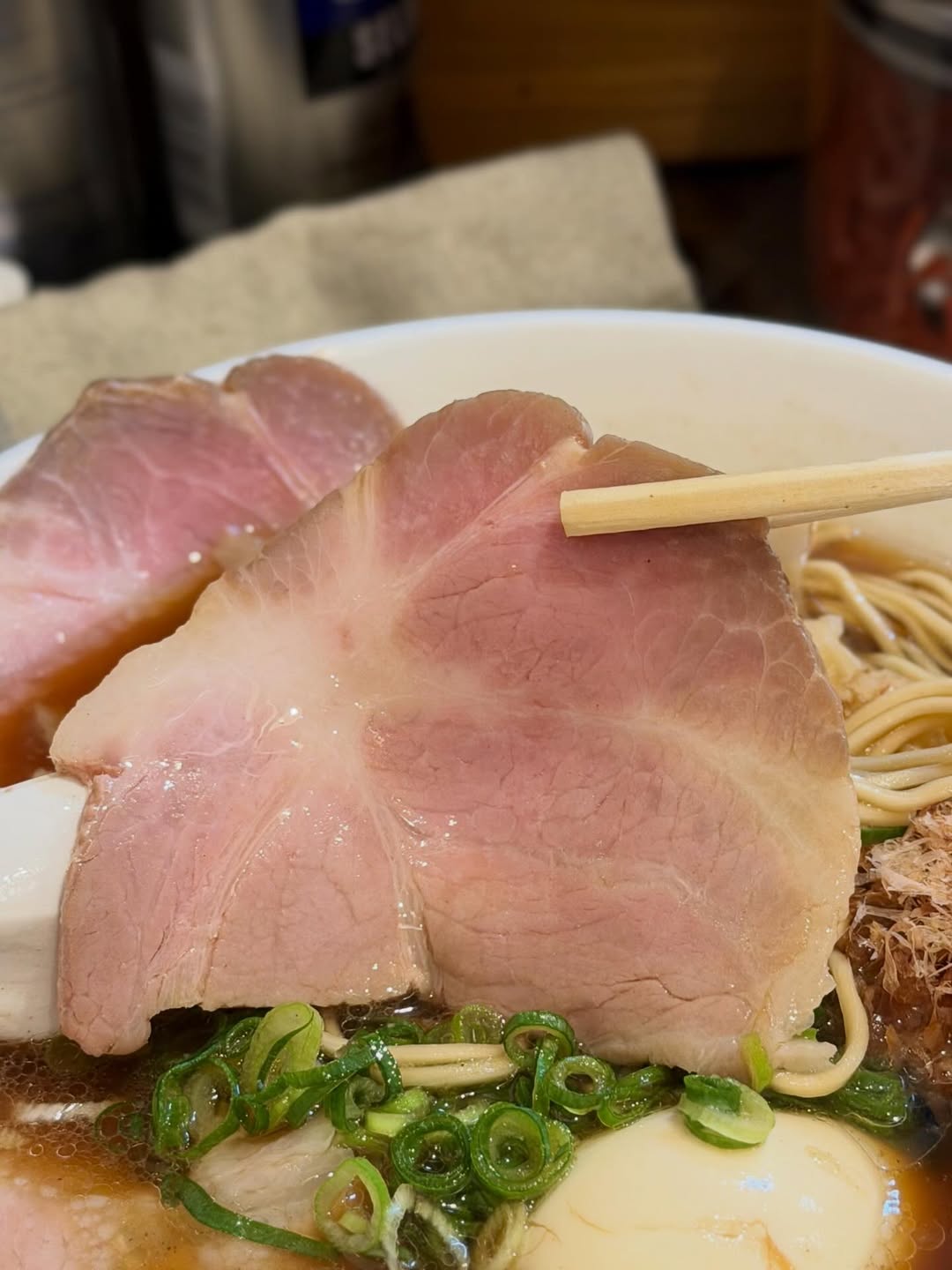 チャーシューはほんのりレアで、旨みをしっかり閉じ込めたとろける食感。