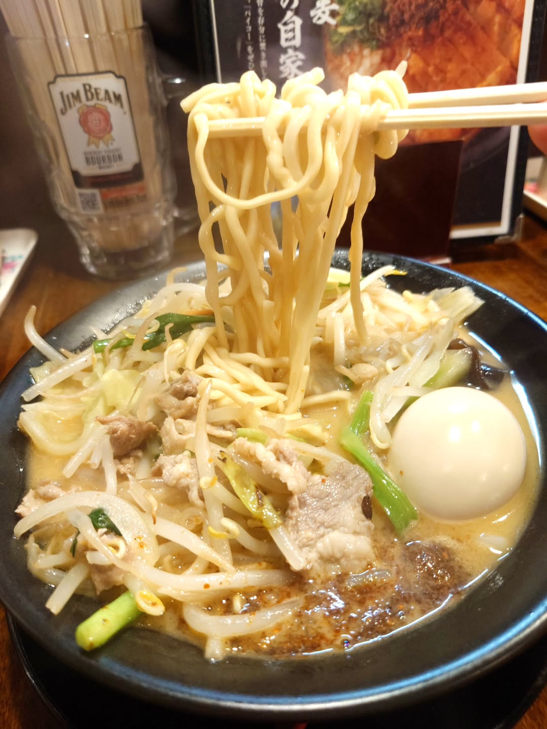 モチモチ食感の自家製太麺がスープをしっかり絡め取り、一口ごとに味噌の旨みを堪能できます。