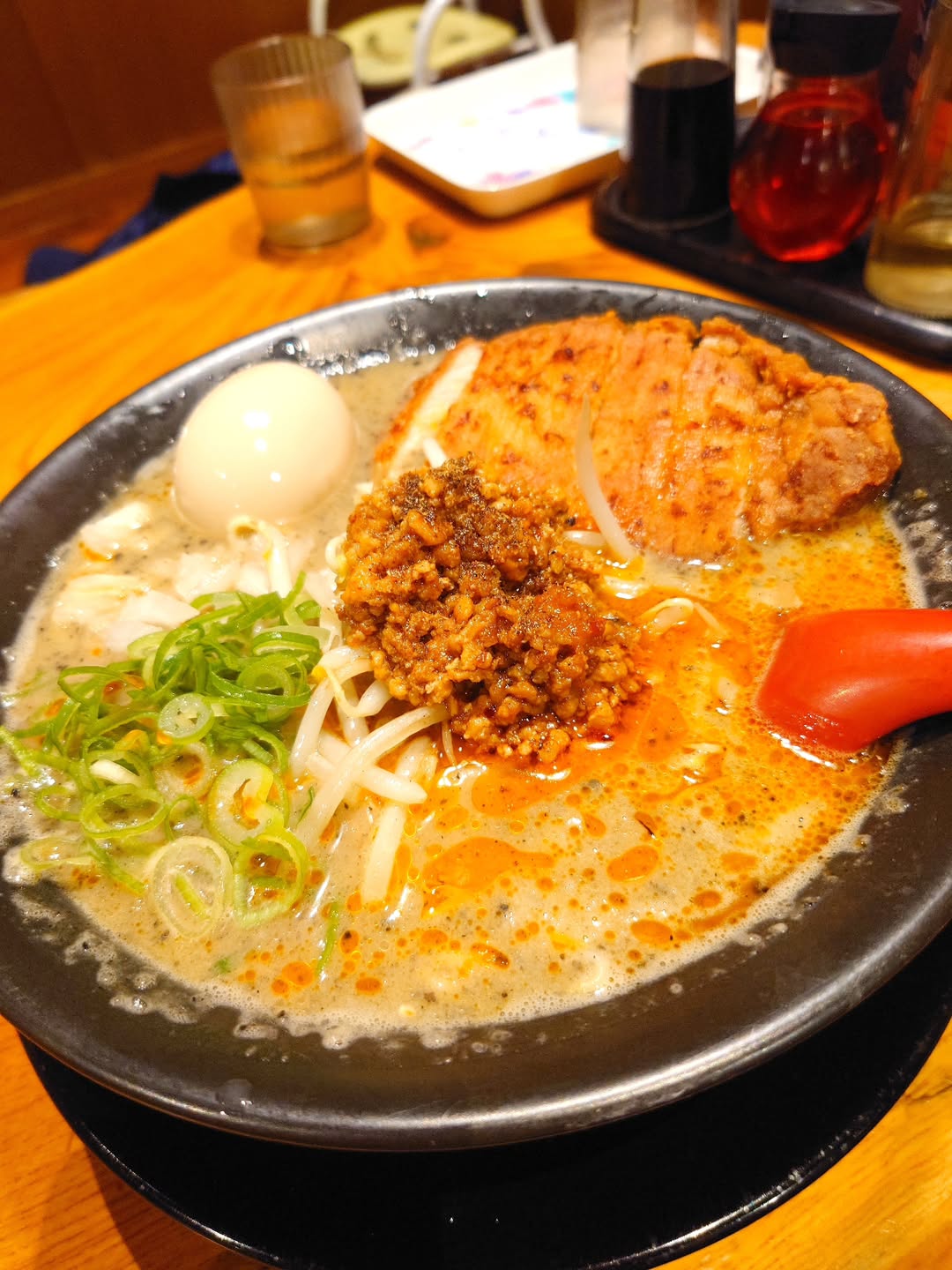 黒胡麻担々パイコー麺(硬め、味玉)写真:@makoto_0913
