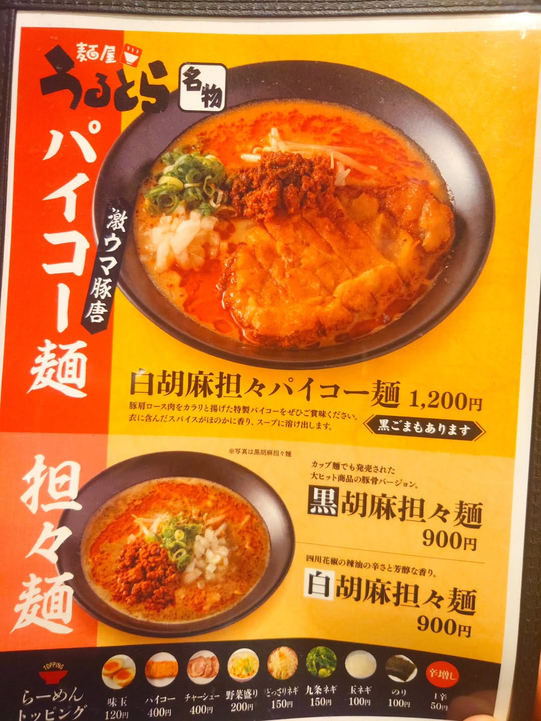 麺屋うるとら土崎店(メニューの一部)写真:@makoto_0913