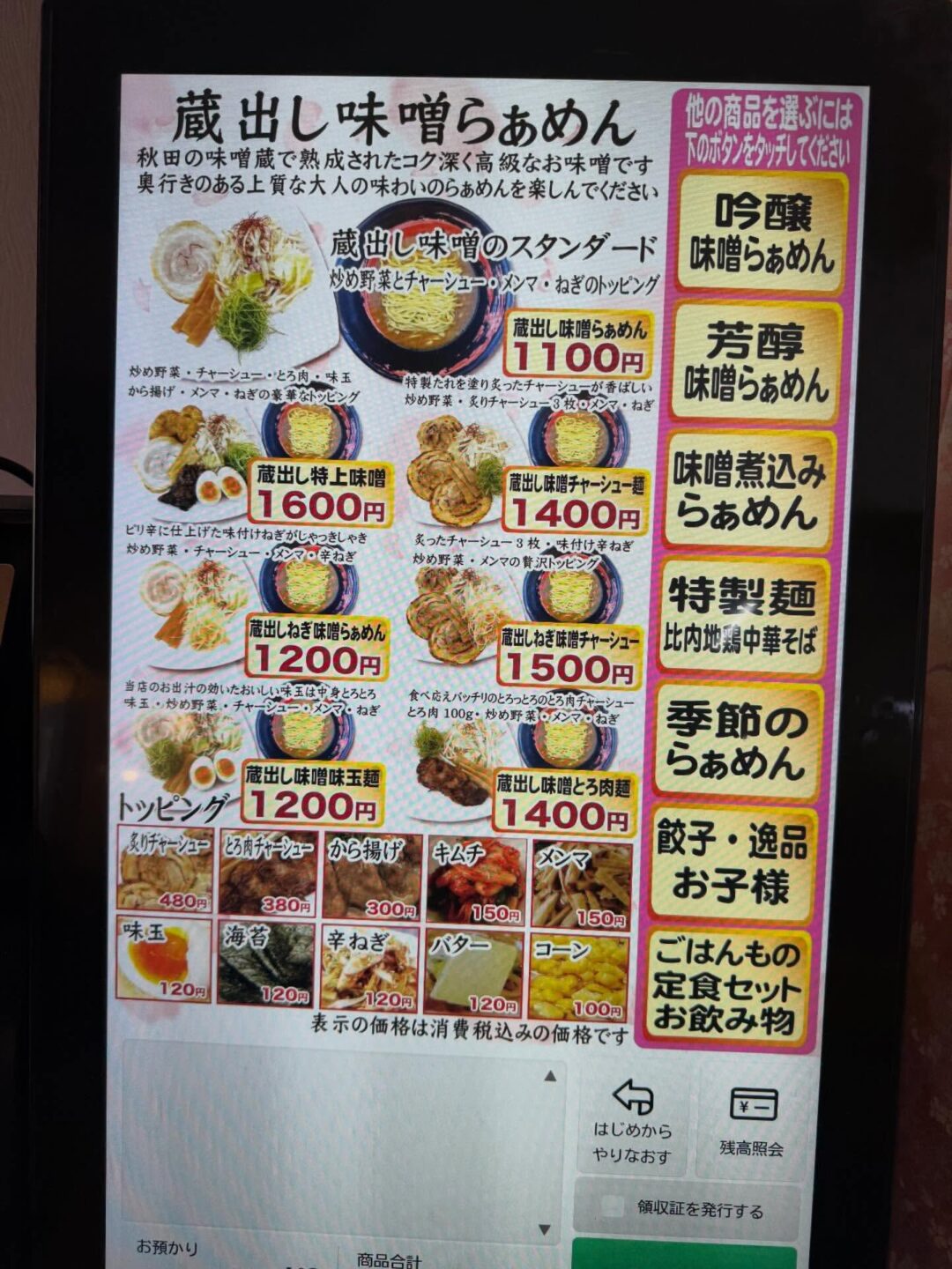 みそらぁめん みそのこまち(メニューの一部)写真:@mentaro_akita