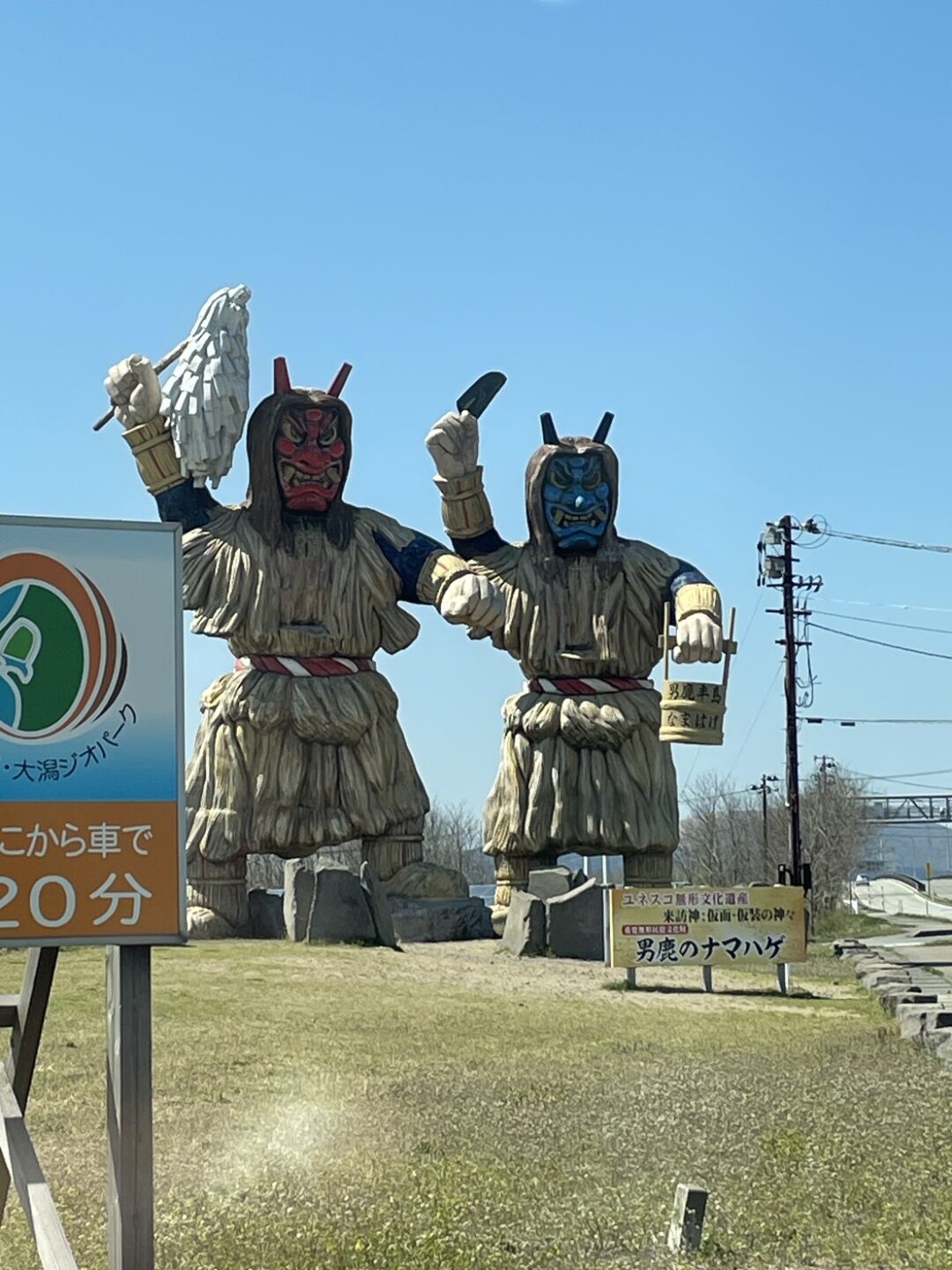 すると、先日の強風の影響で一部が折れてしまったなまはげ像を発見しました。