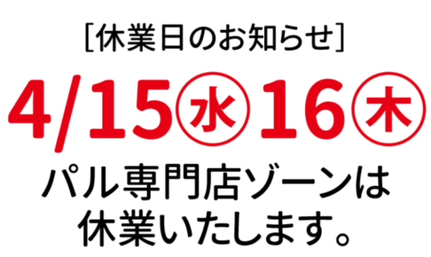 江釣子ショッピングセンター パルの専門店ゾーンが、2026年4月15日(水)・16日(木)の2日間、休業することが発表されました。 今回の休業は、4月17日(金)に予定されているリニューアルオープンに向けた準備のためとみ…