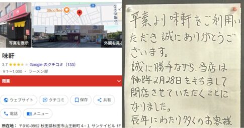 オープン・クローズ【秋田市】「ラーメン味軒」が2026年2月28日で閉店していました。萬亀跡地にオープンしたラーメン店