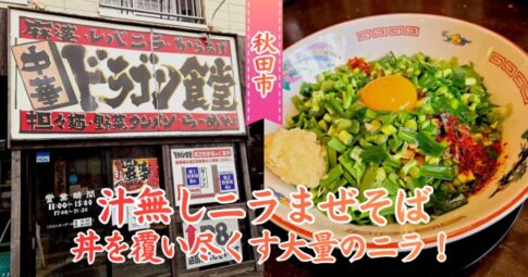 ラーメン【秋田市】山王の中華ドラゴン食堂で「汁無しニラ」まぜそばを実食!本日の麺活・サラリーマン佐藤