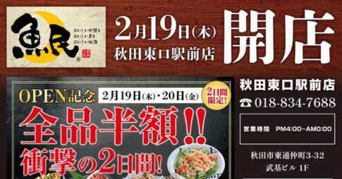 PR TIMES【秋田市】「魚民 秋田東口駅前店」が2026年2月19日(木)にオープンしました!