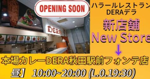 オープン・クローズ秋田市中通に、新店舗「ハラールレストラン デラ 秋田駅前フォンテ店」がオープン予定です。 同店のインスタグラムによると、営業時間は10:00〜20:00(ラストオーダー19:30)。 場所は「秋田市中通2-8-1 フォン…