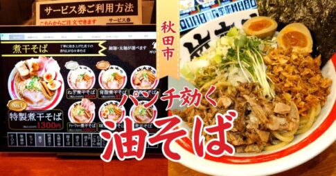 ラーメン【秋田市】「竹本商店煮干センターあじと」で煮干し油そば!一口目からパンチが効いてます|本日の麺活・サラリーマン佐藤