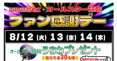 ニュース【8月12日〜17日開催】第68回オールスター競輪(GⅠ)にあわせ「ファン感謝デー」開催!|サテライト六郷