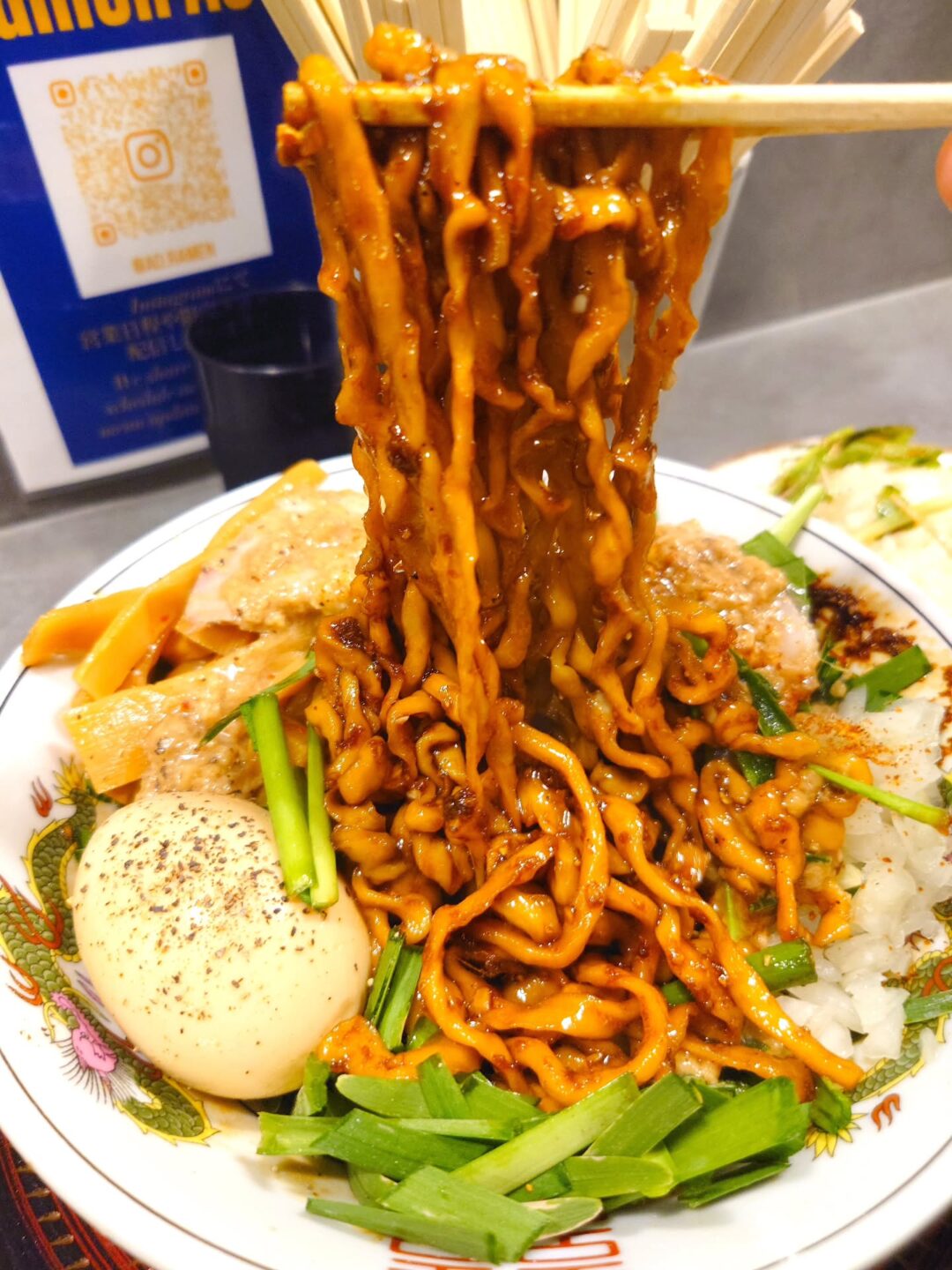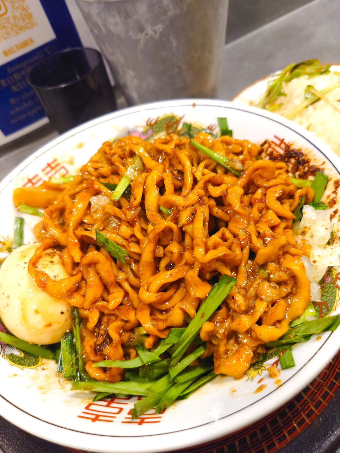 - 圧倒的な背徳感満載の見た目を裏切らない濃厚な油そば