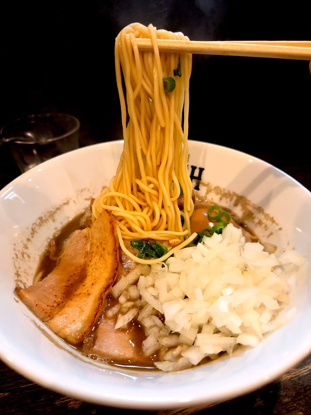 パツパツ低加水麺と玉ネギ増しが生む最強バランス