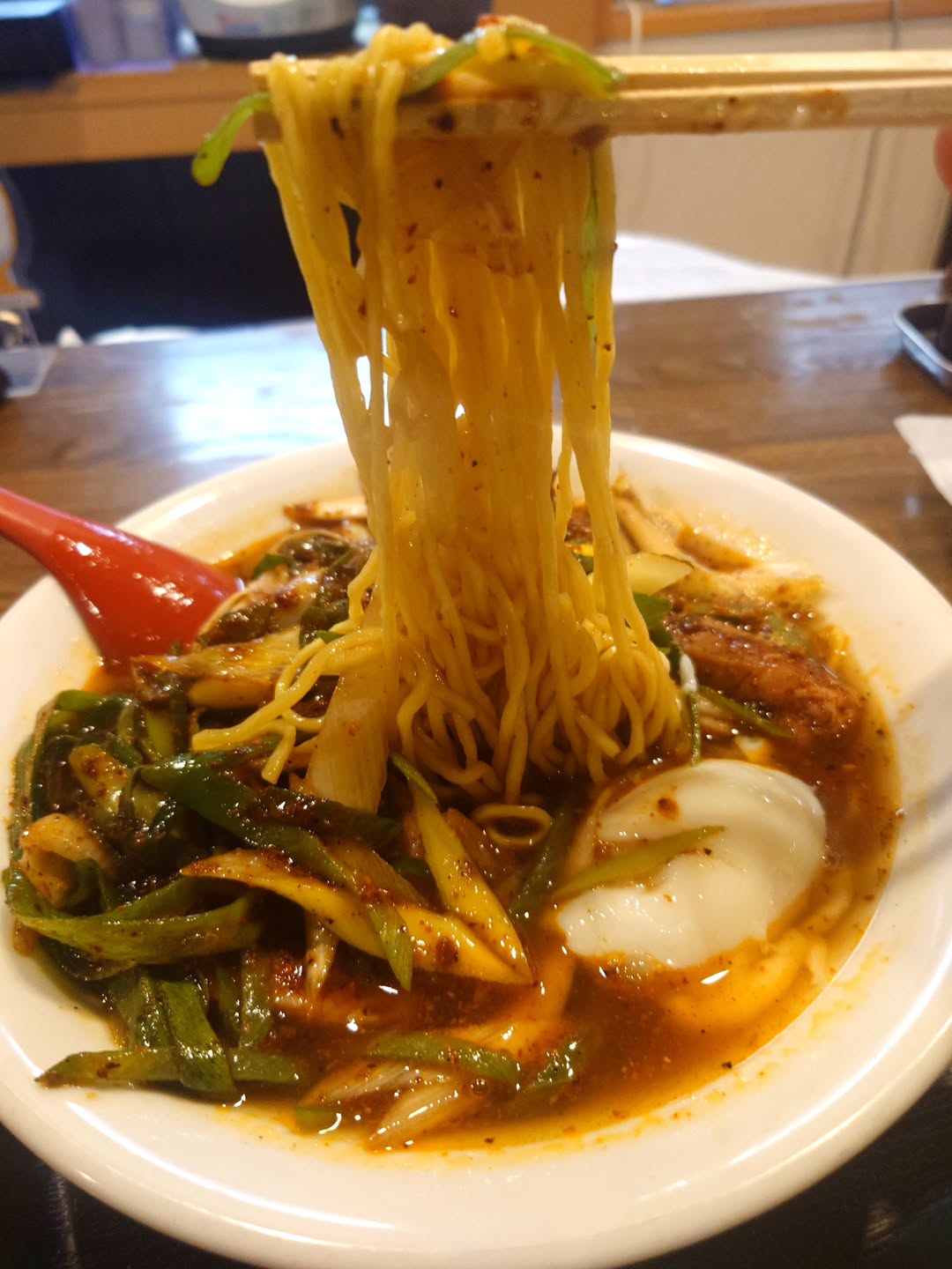 「旨辛葱らぁめん(3辛+温玉トッピング)」写真:@makoto_0913