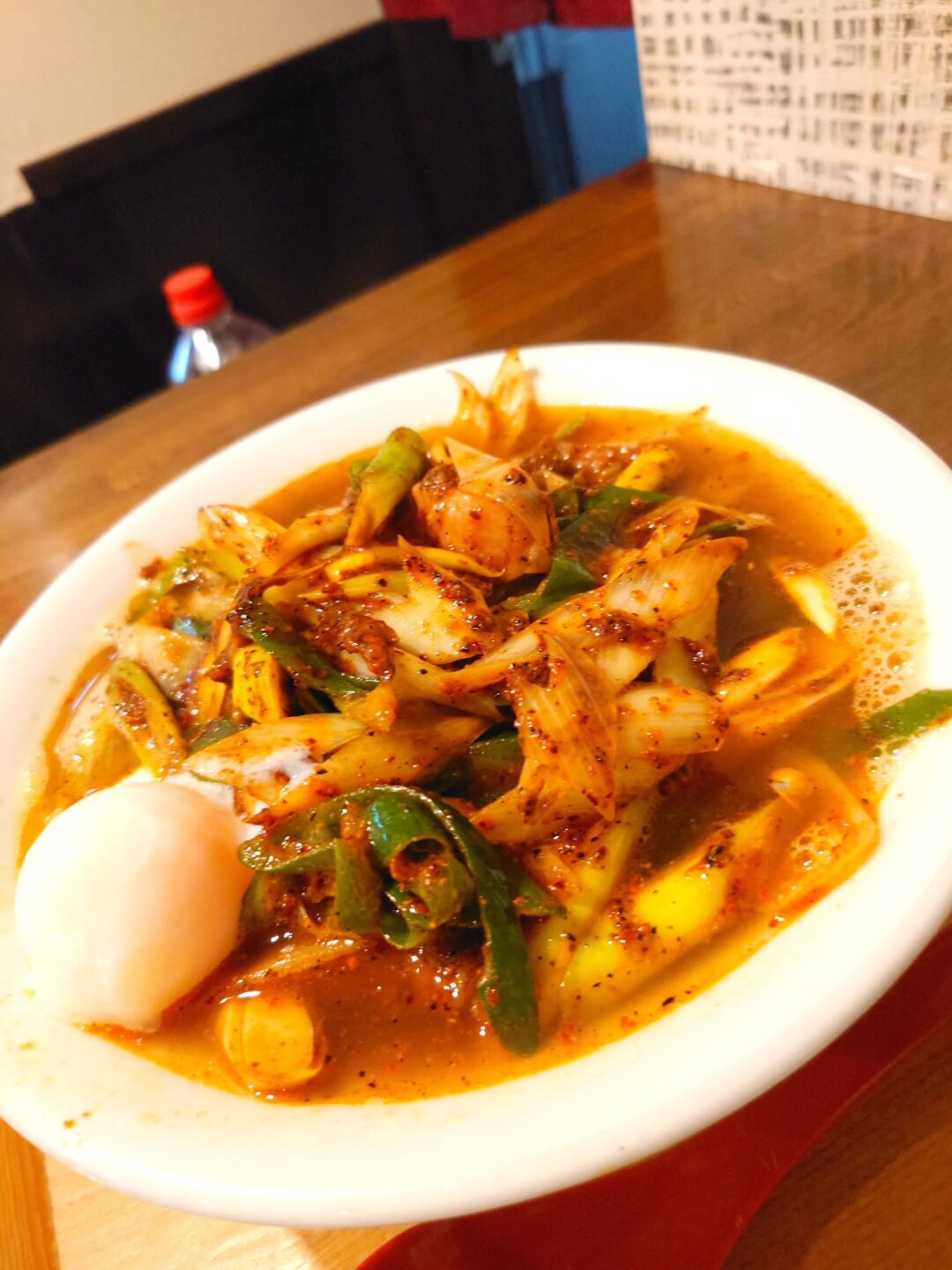 辛葱らぁめん(3辛、温玉)写真:@makoto_0913