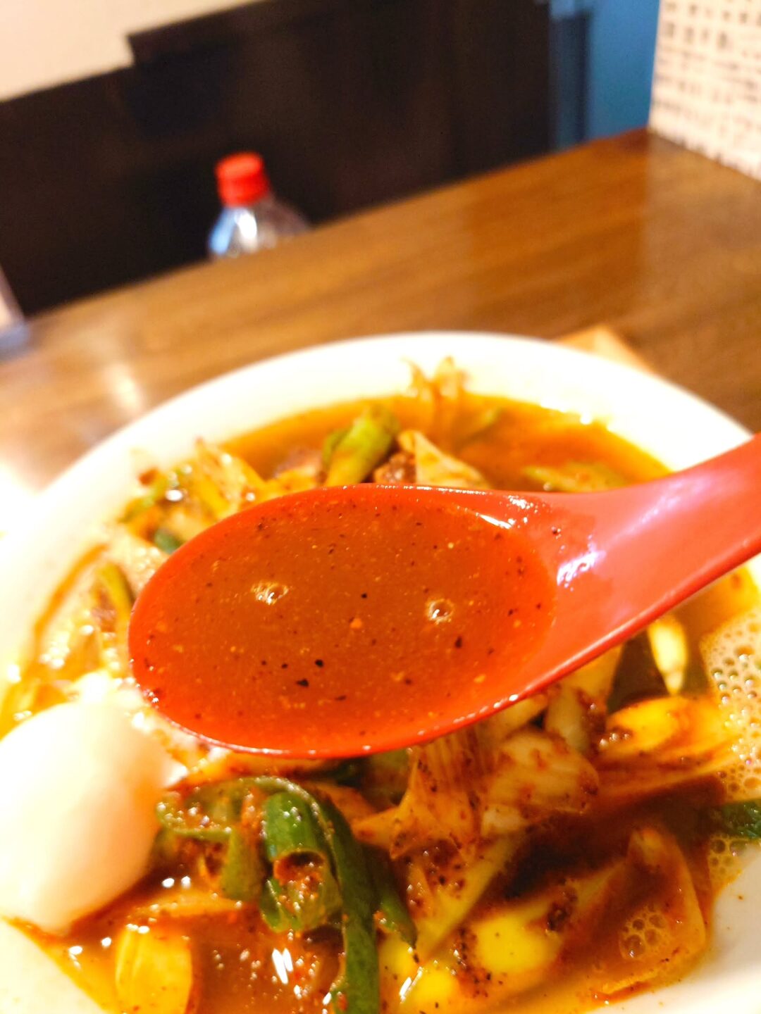 スープを一口すすると、辛味の中にしっかりとした旨味があり、ただ辛いだけでは終わらない奥深さを感じます。