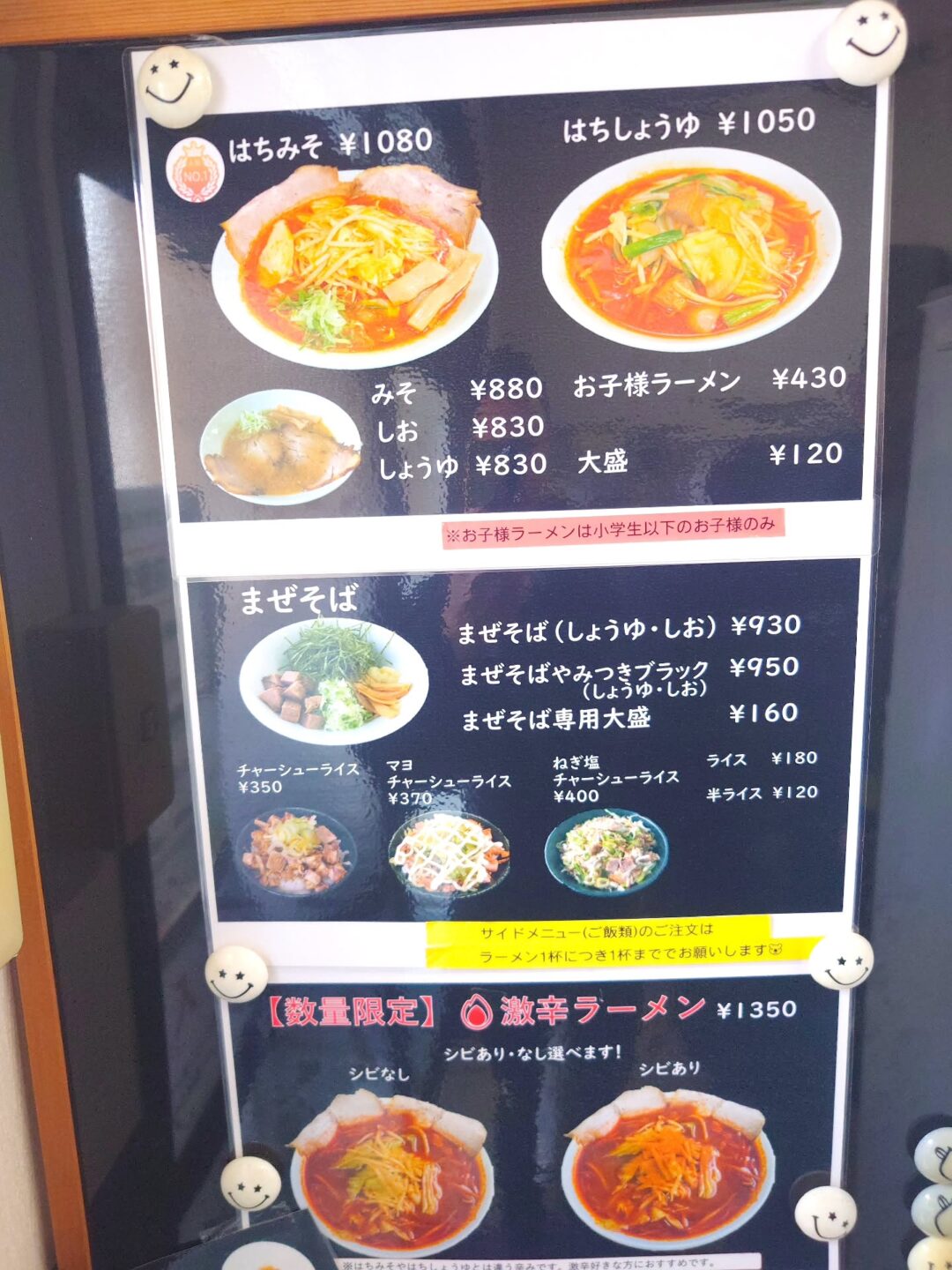 ラーメンはち(メニューの一部)写真:@makoto_0913