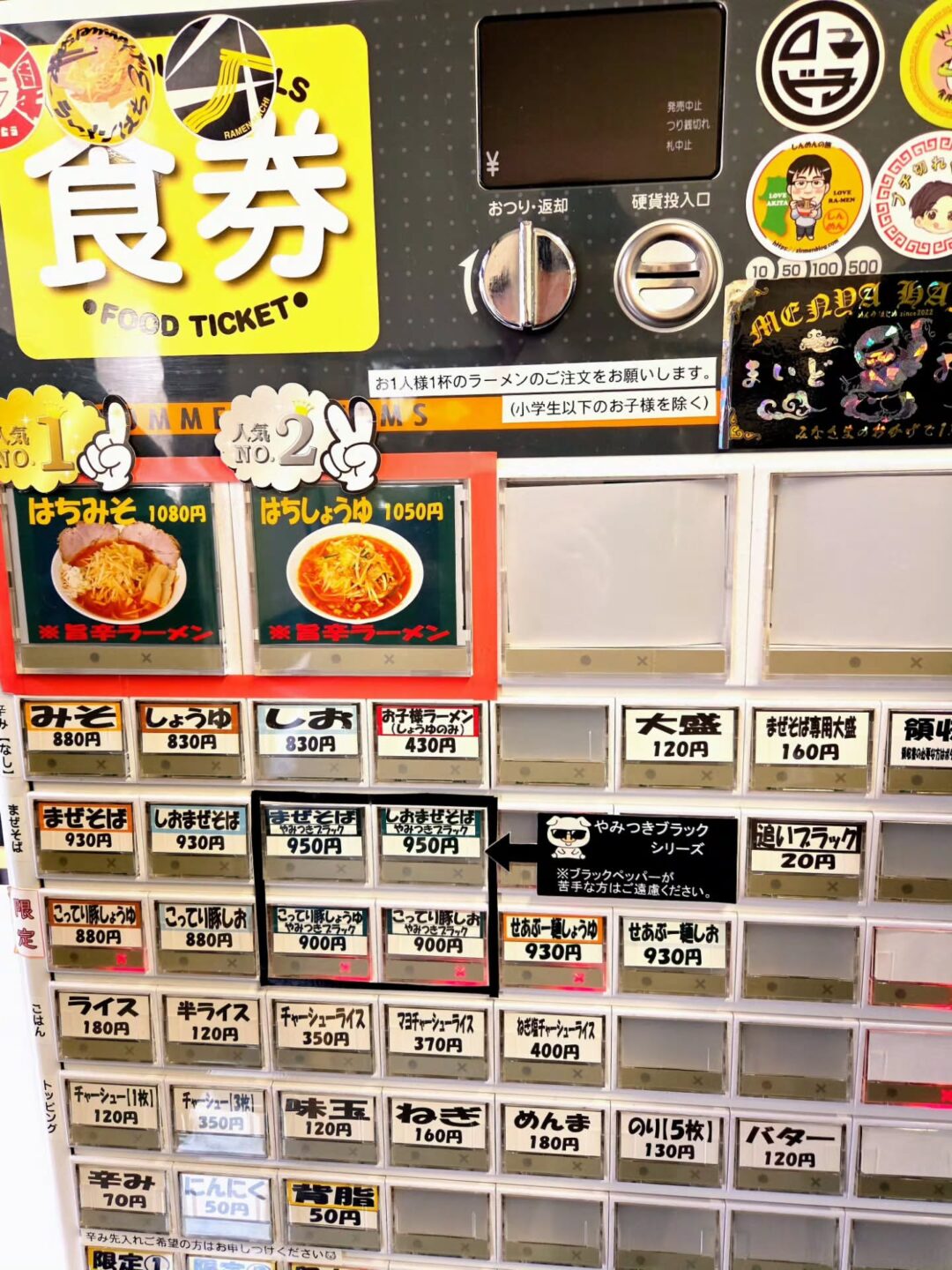 ラーメンはち(券売機メニュー)写真:@makoto_0913