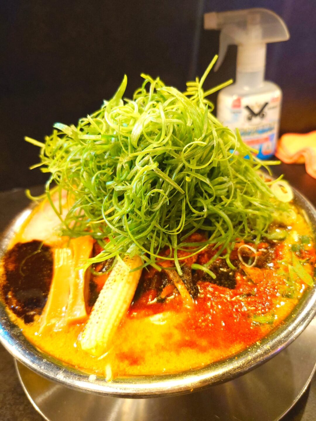 辛痺ラーメン(辛さ中、痺れ中、細切葱、半コツトッピング)写真:@makoto_0913
