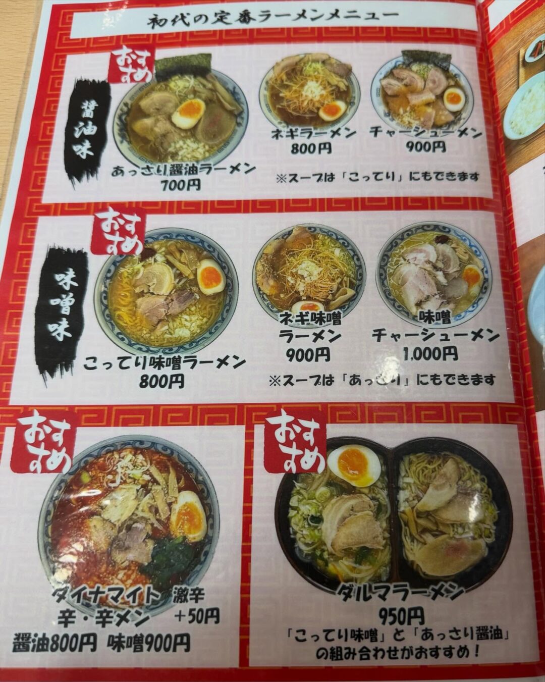 メニューを開く前から決めていたのは「ダイナマイト味噌 こってり太麺」。