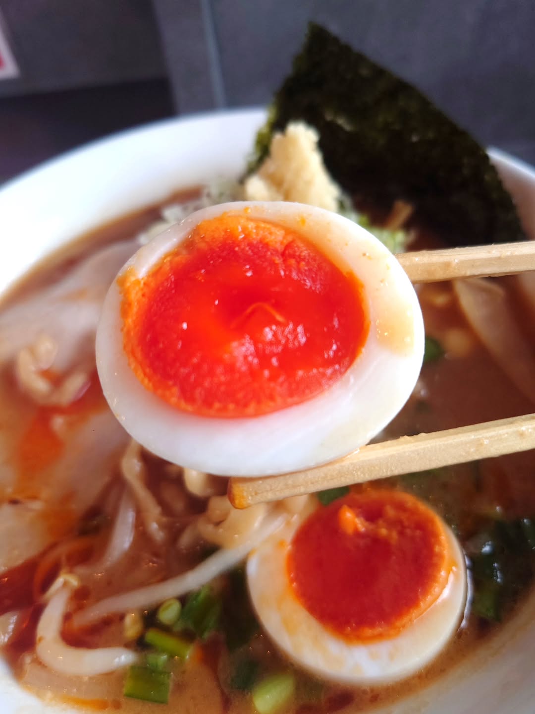 「味噌ラーメン(真っ赤卵の味玉)」写真:@makoto_0913