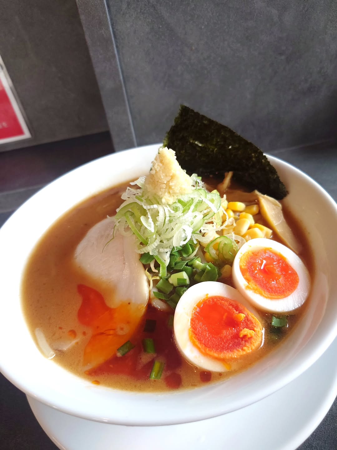 いただいたのは「味噌ラーメン(真っ赤卵の味玉)」です!