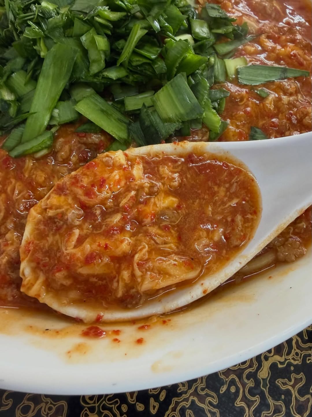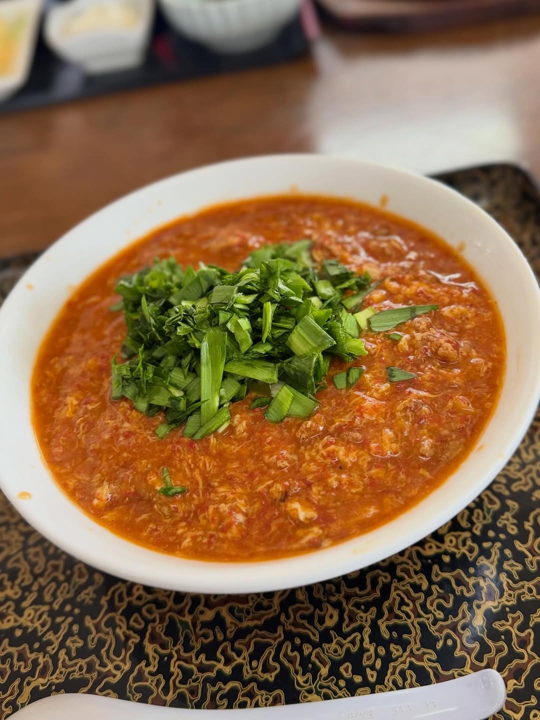 スープは辛さがガツンと効いたドロドロ系で、レンゲですくうたびに濃厚な旨みが押し寄せてきます。