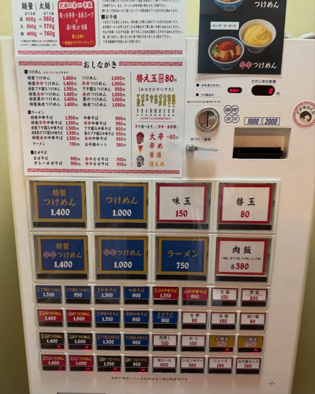 麺華春は桜に牡丹(券売機メニュー)写真:@mentaro_akita