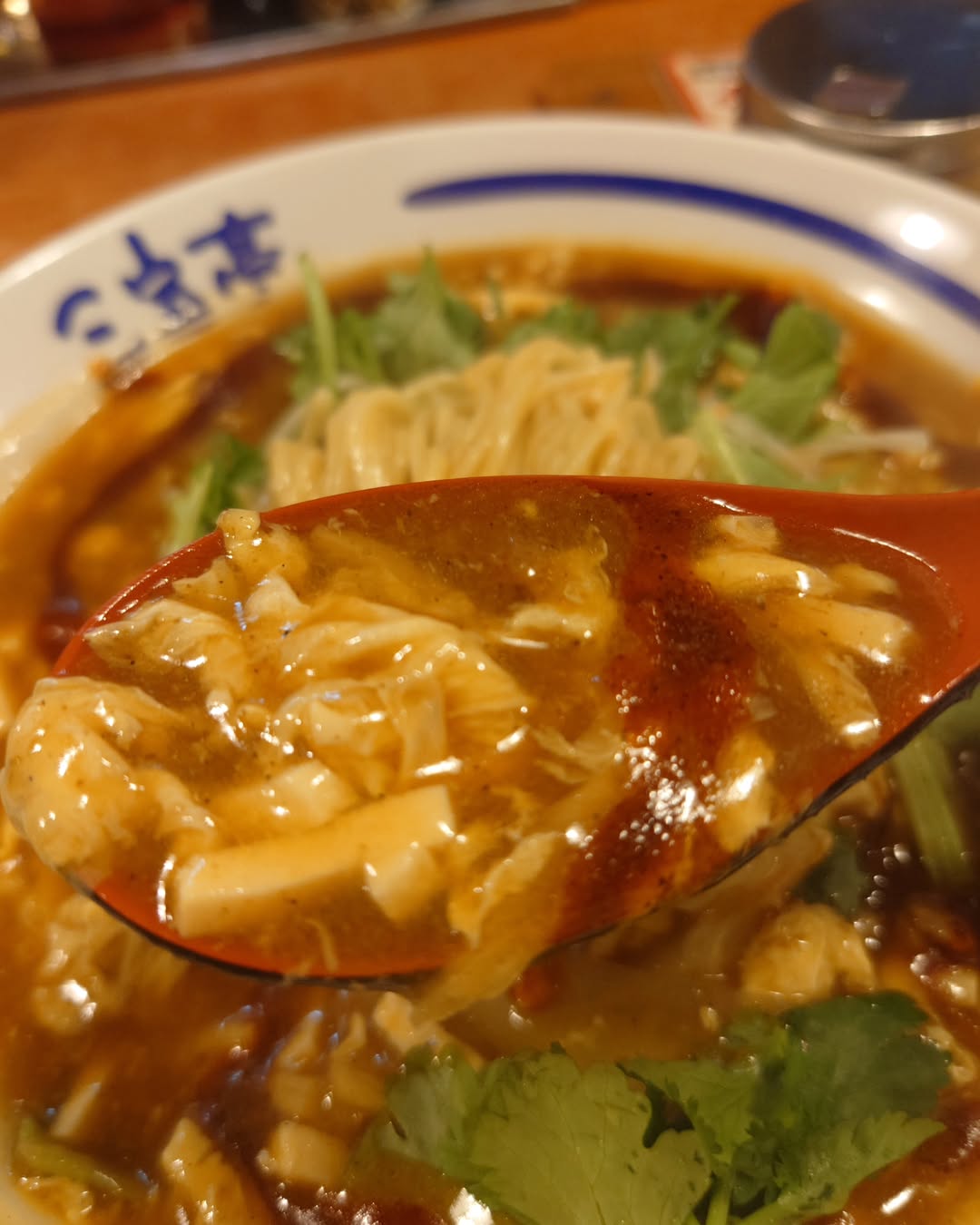 とろみのあるスープがしっかり麺に絡み、最後まで飽きずに完飲してしまいました。