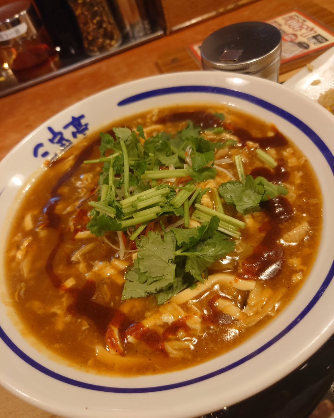 「酸辣湯麺(中辛+パクチー増し)」写真:@makoto_0913