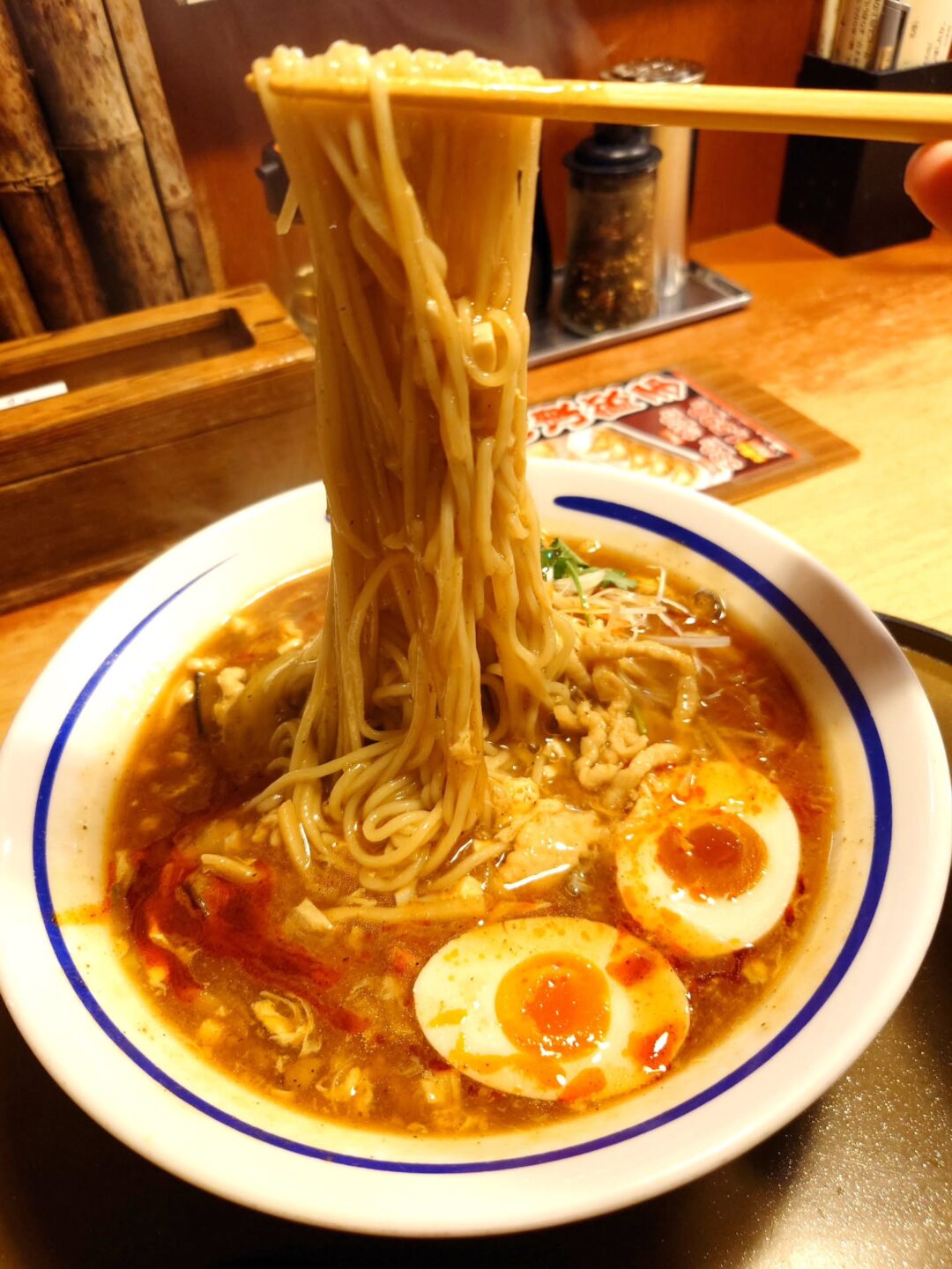 とろみのあるスープが麺にしっかり絡んで、最後まで夢中で食べ進めてしまう一杯です。