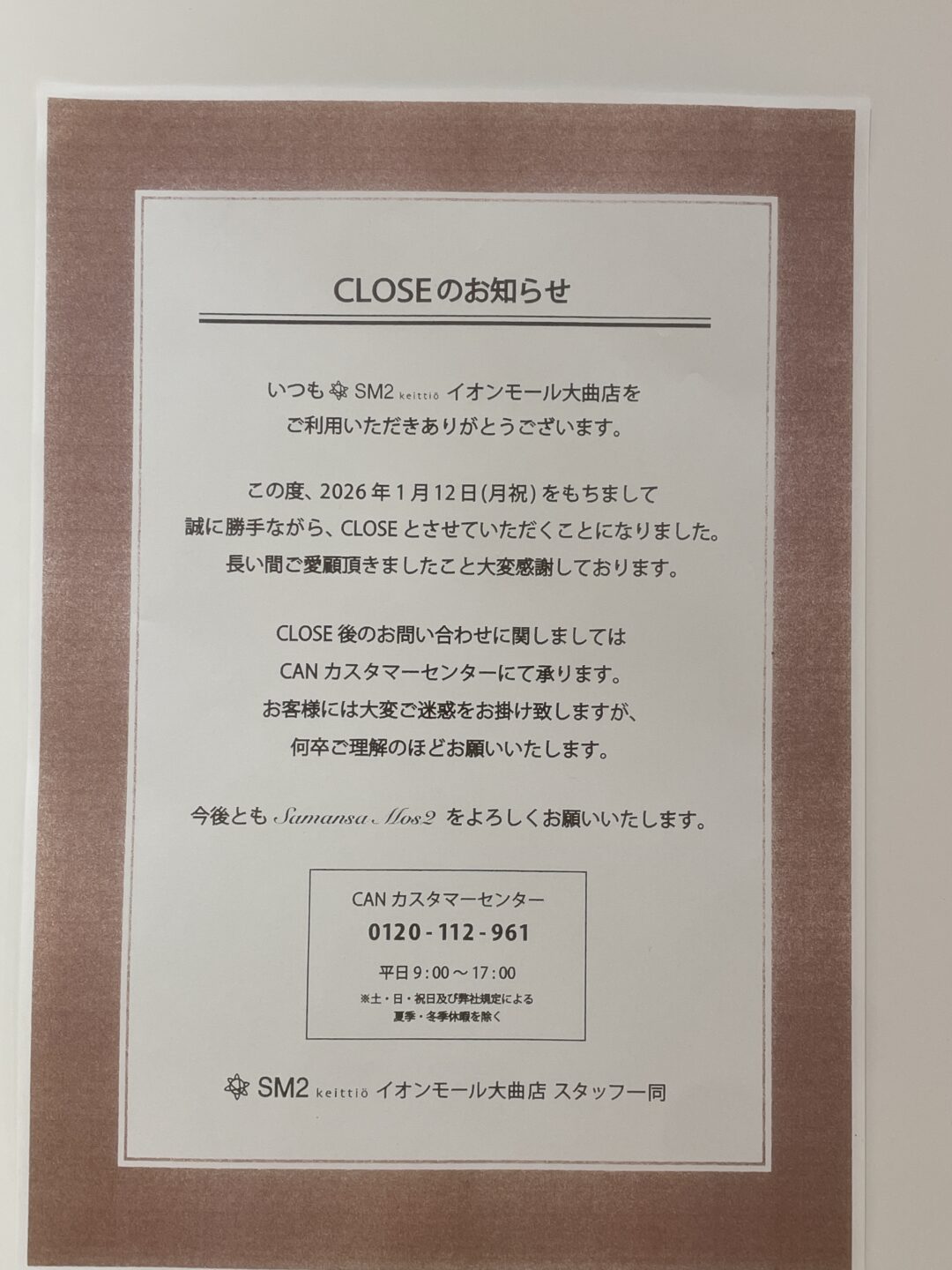 この度、2026年1月12日(月祝)をもちまして、誠に勝手ながらCLOSEとさせていただくことになりました。